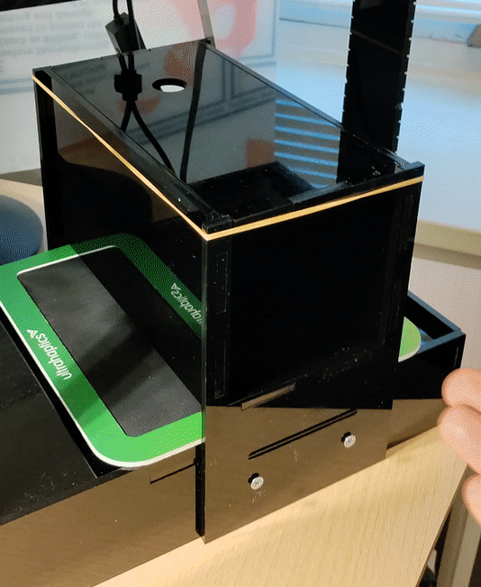 - Grab on to the handle at the end of the box. You can rest your arm on the box.